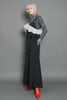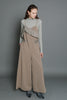 両脇ポケット・後ろポケットあり/後ファスナー開き/肩紐で着丈長さ調整可能/裏地付き。