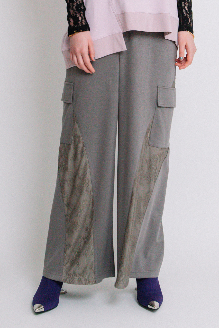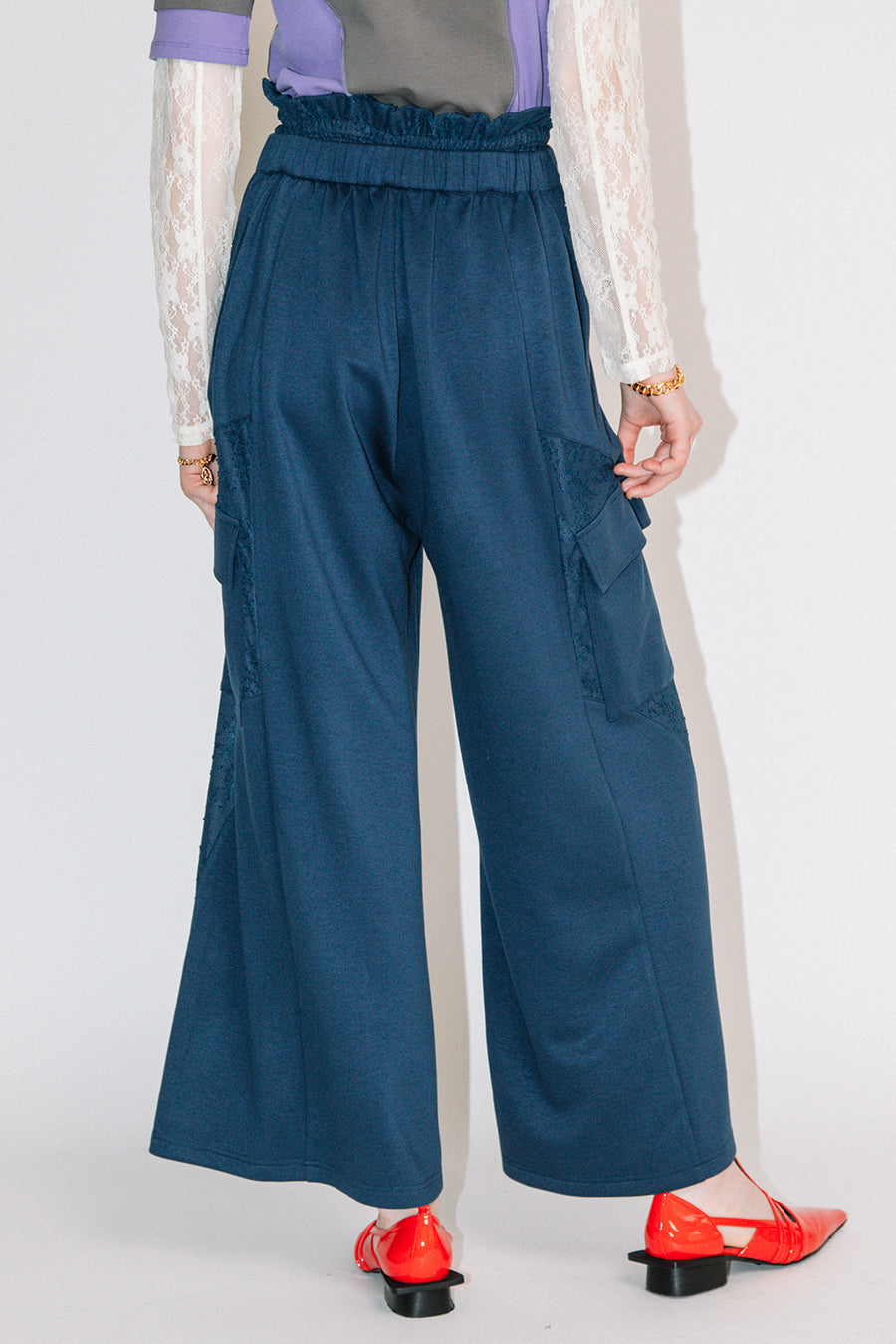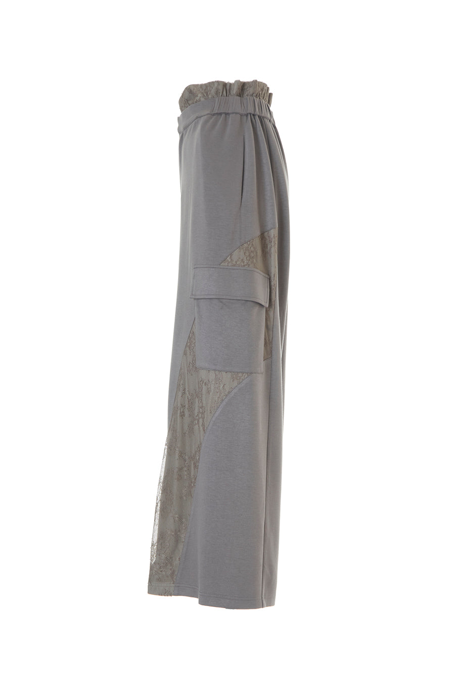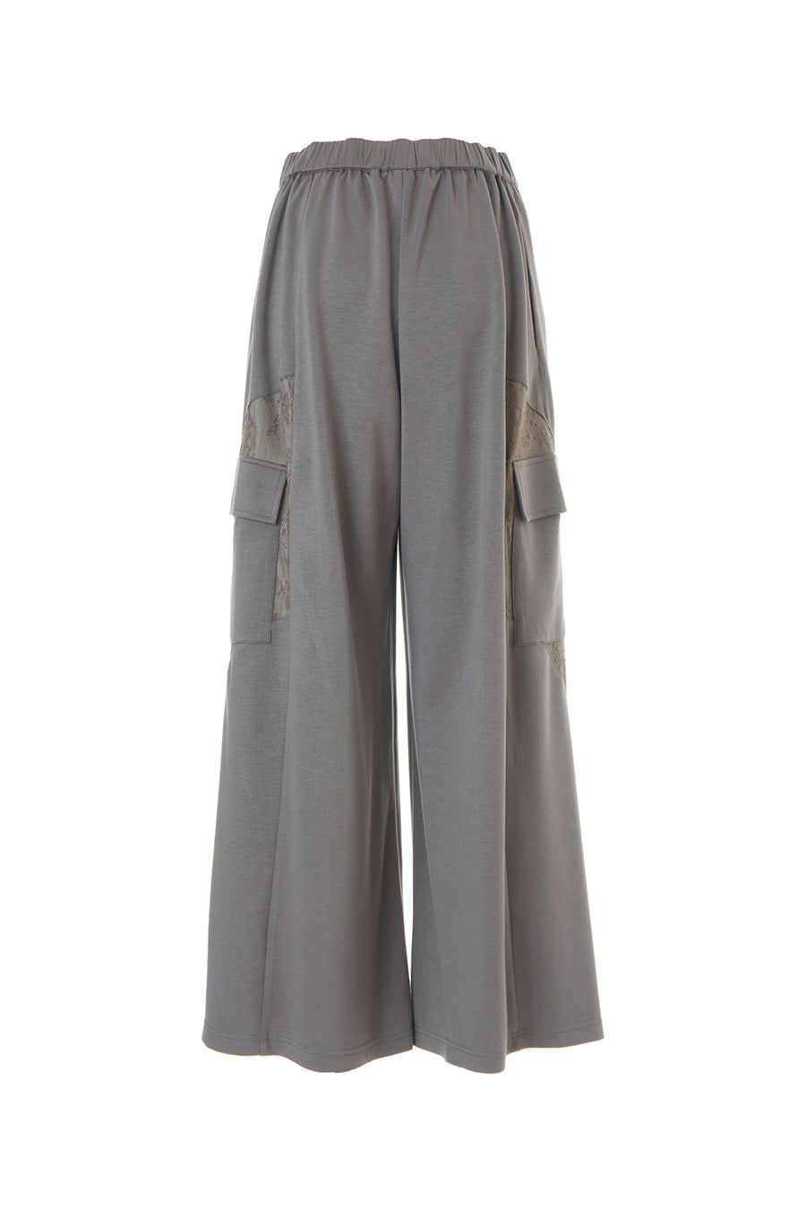サイドのカーブラインのレース切り替えが華やかなイージーカーゴパンツ。
