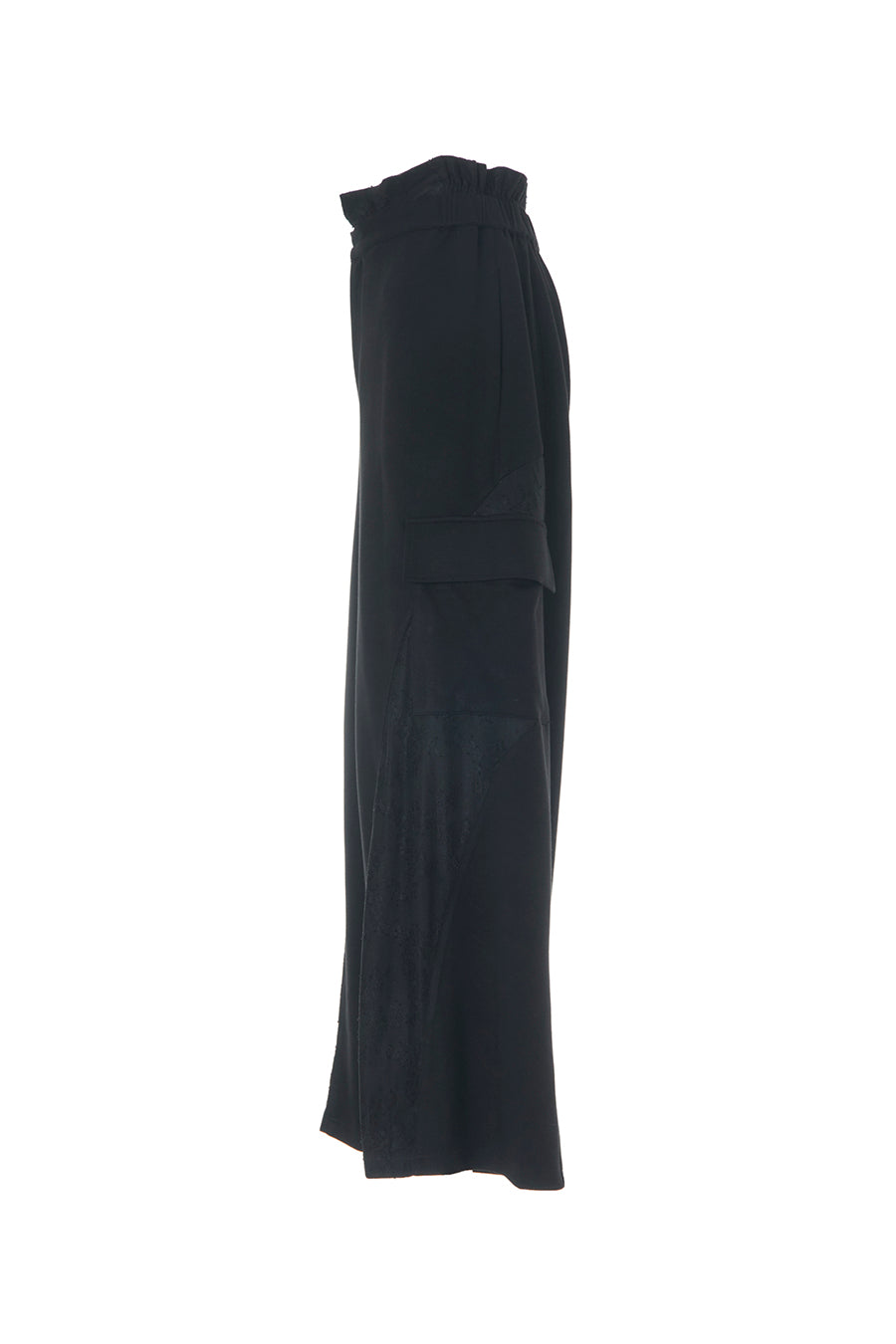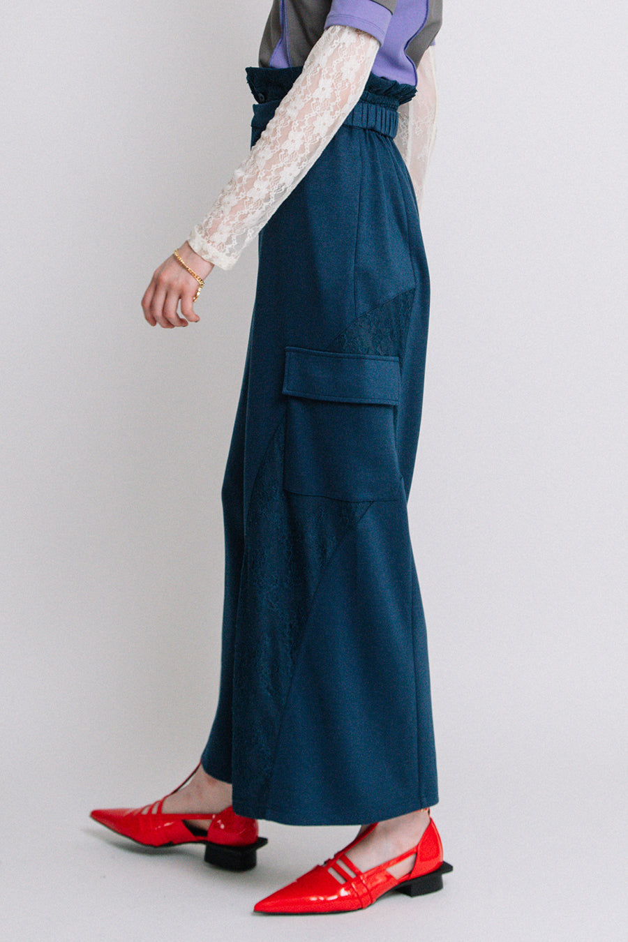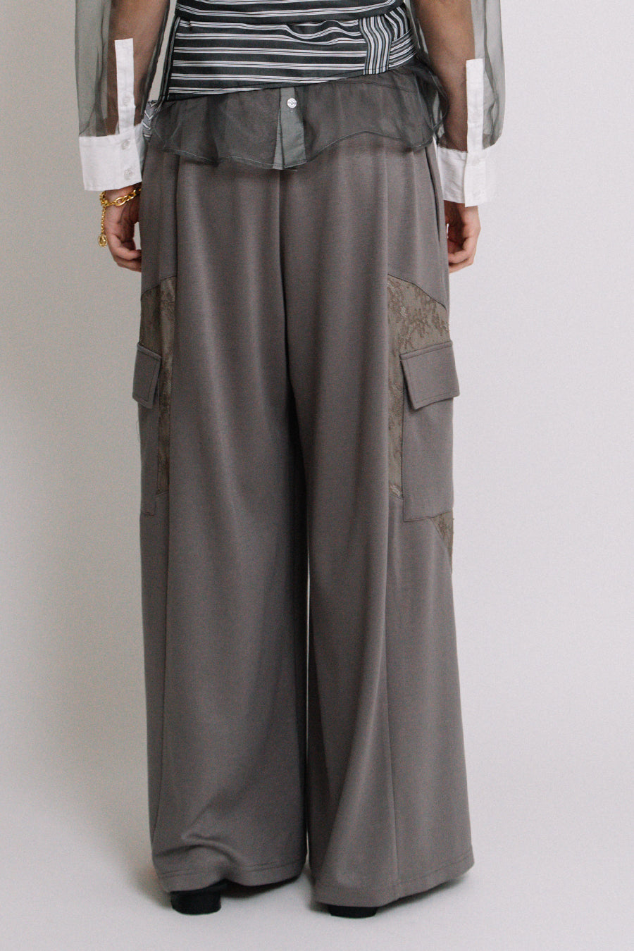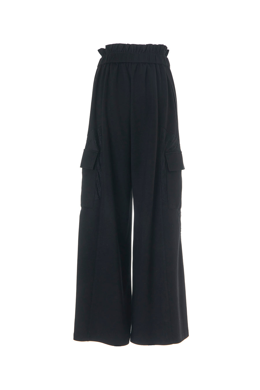 サイドのカーブラインのレース切り替えが華やかなイージーカーゴパンツ。