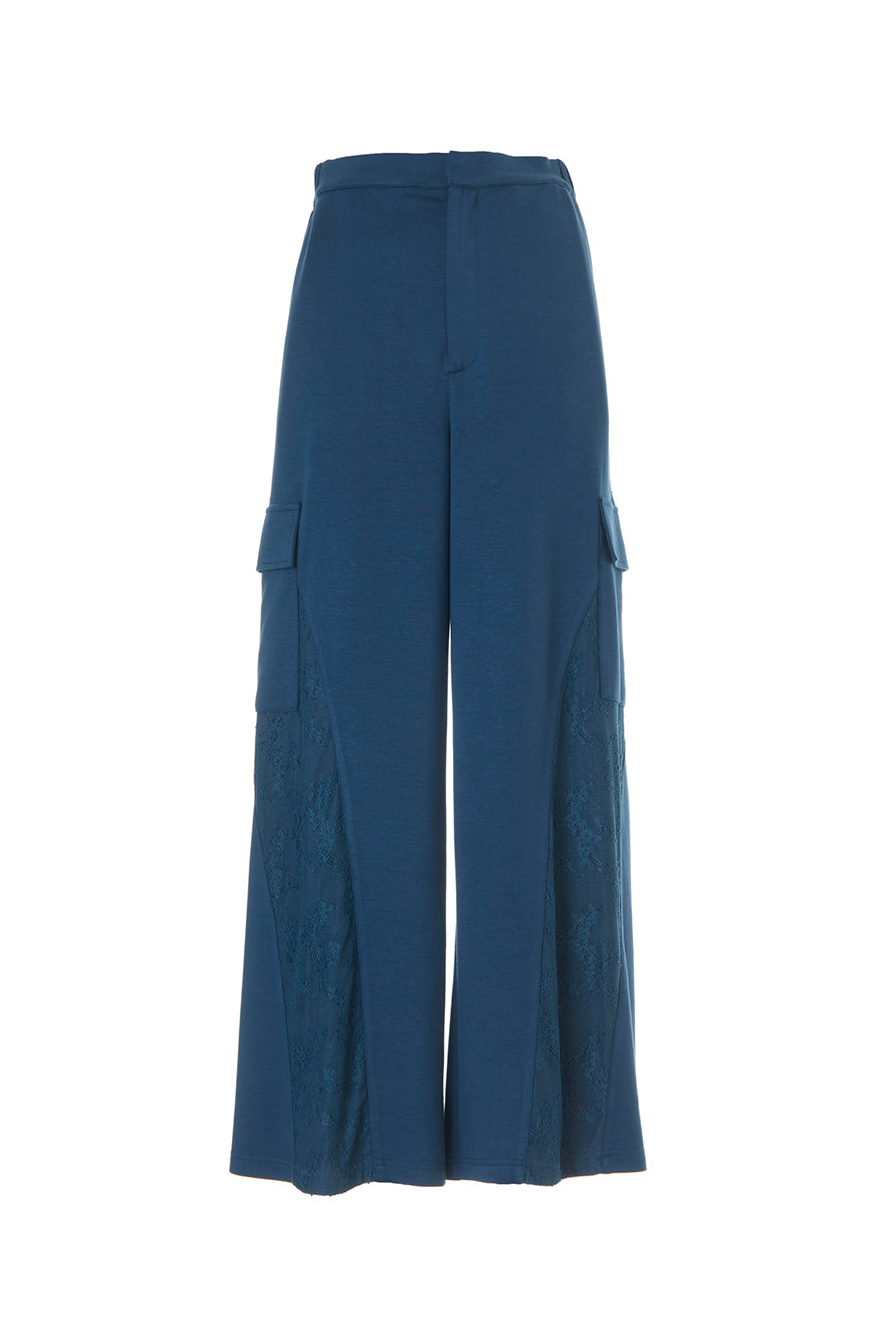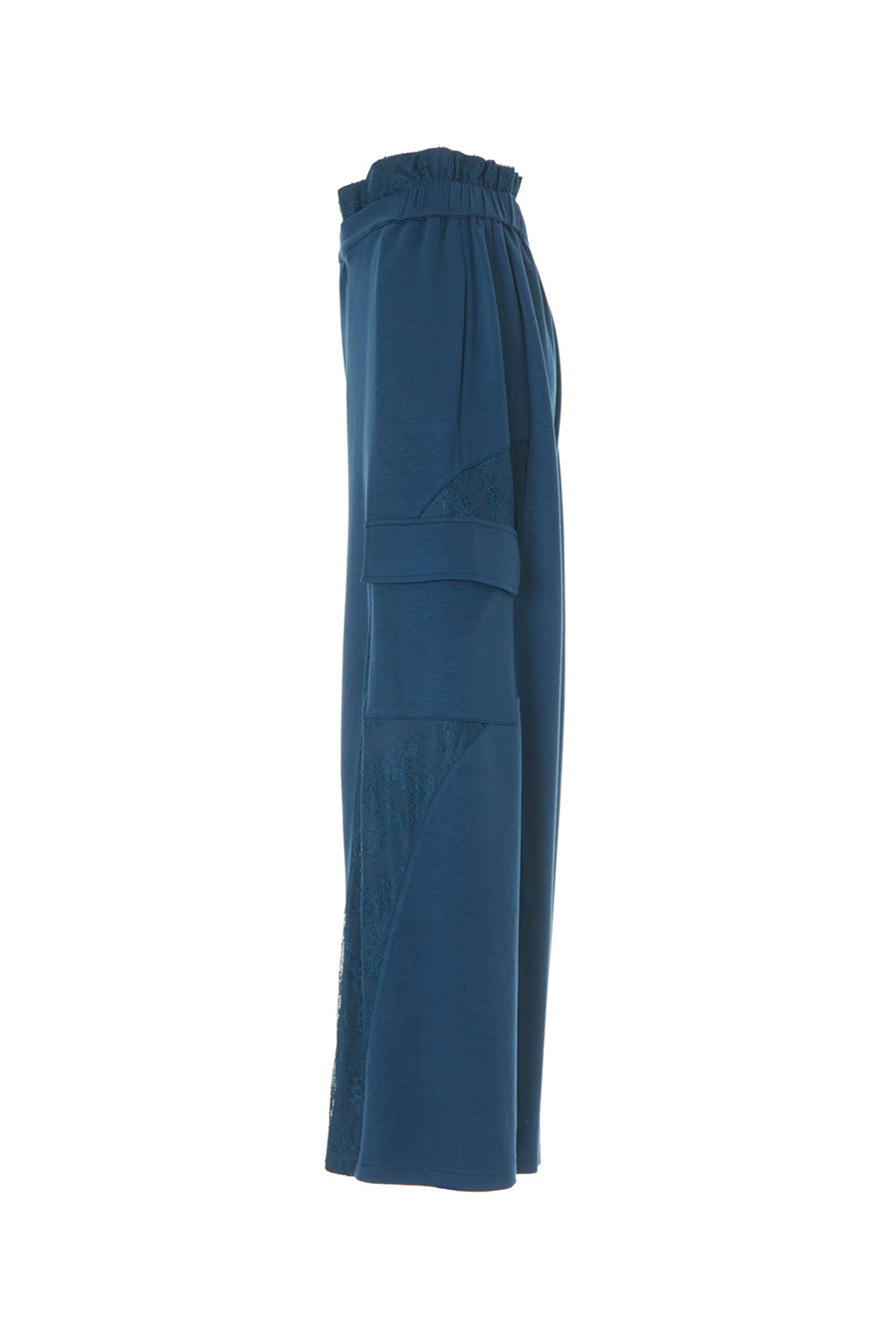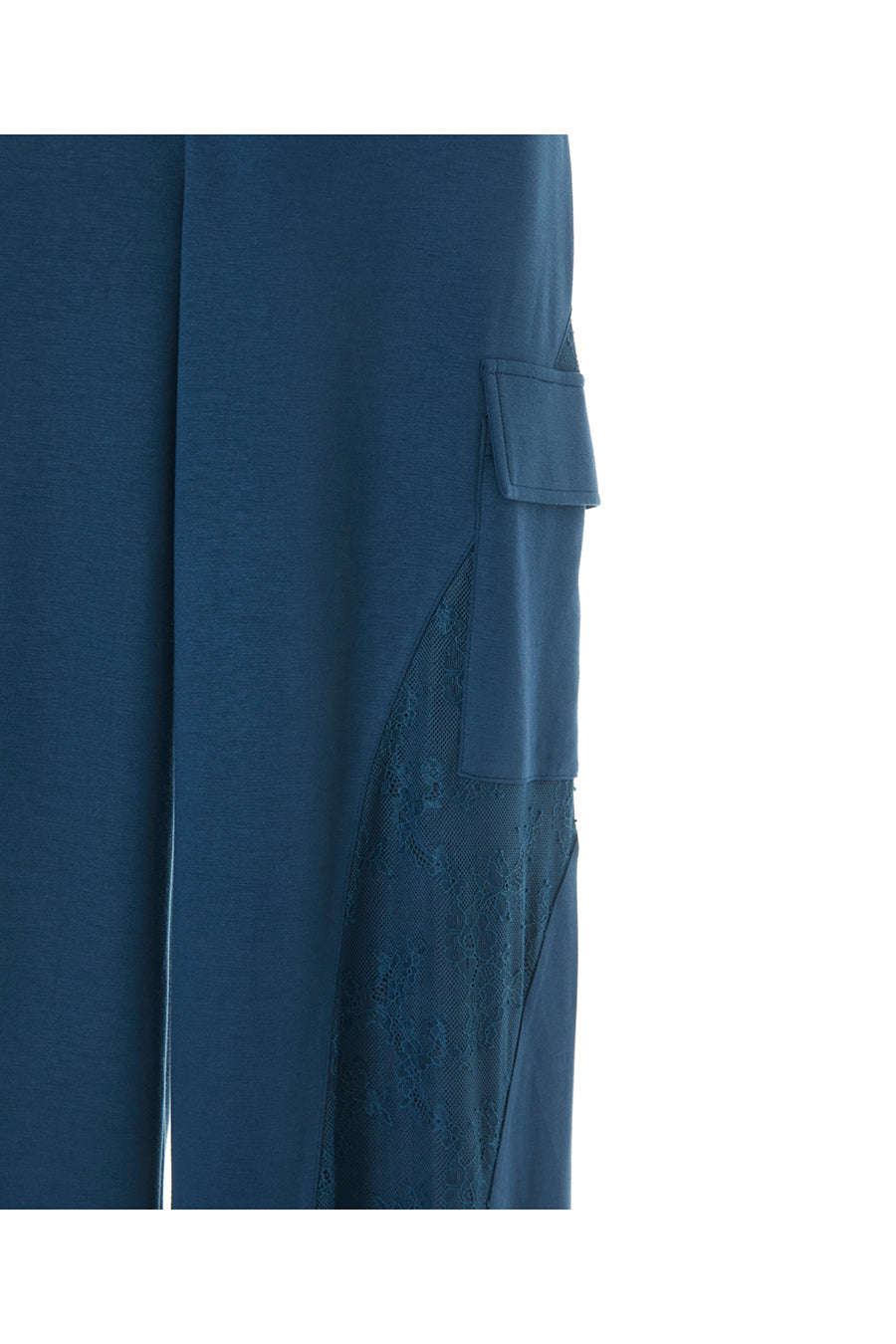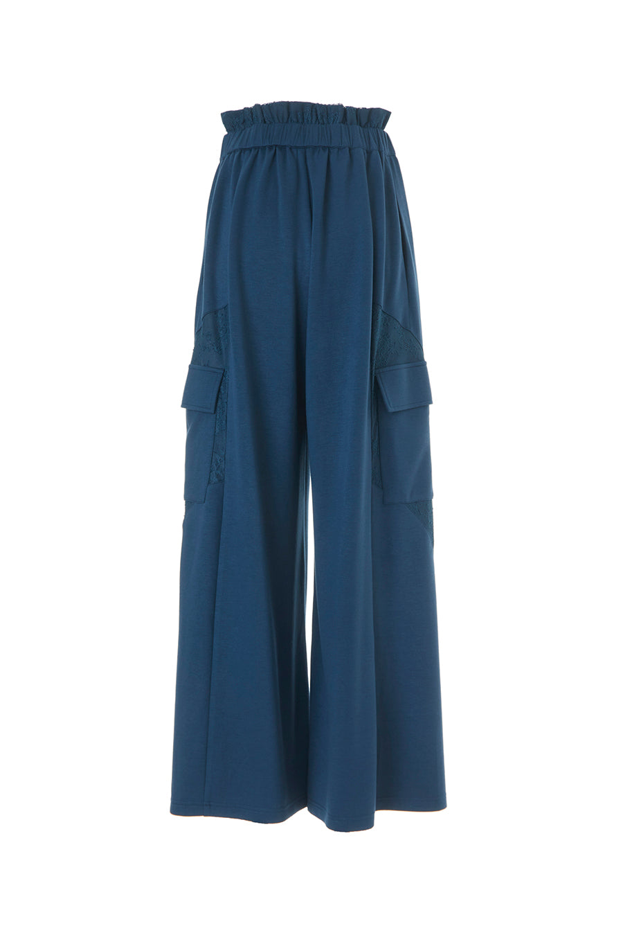 サイドのカーブラインのレース切り替えが華やかなイージーカーゴパンツ。
