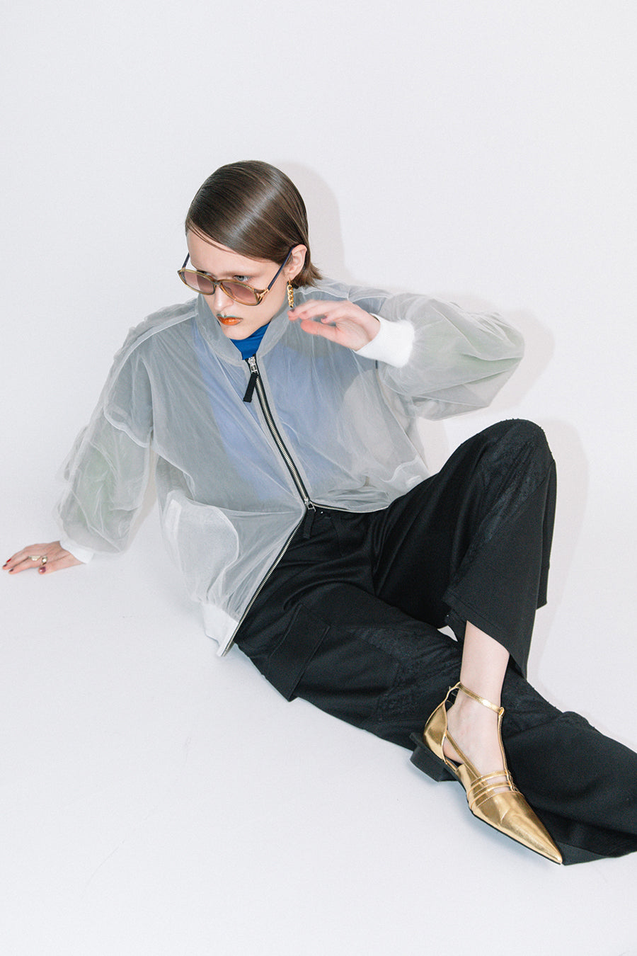 使用した微光沢のある綺麗な目面のポンチ生地は、ストレッチ性抜群でさらっとした肌触りで着心地も◎
