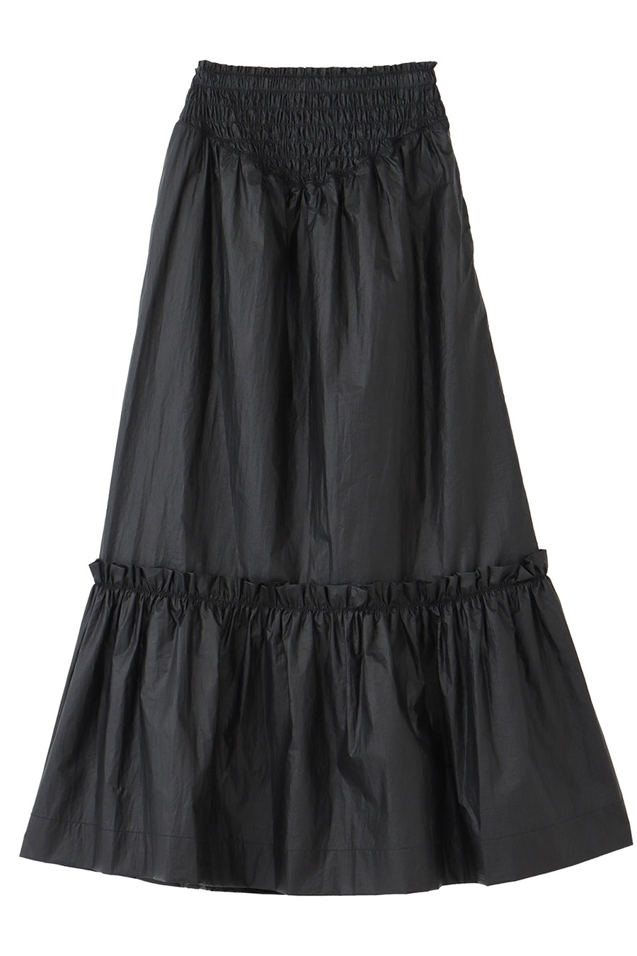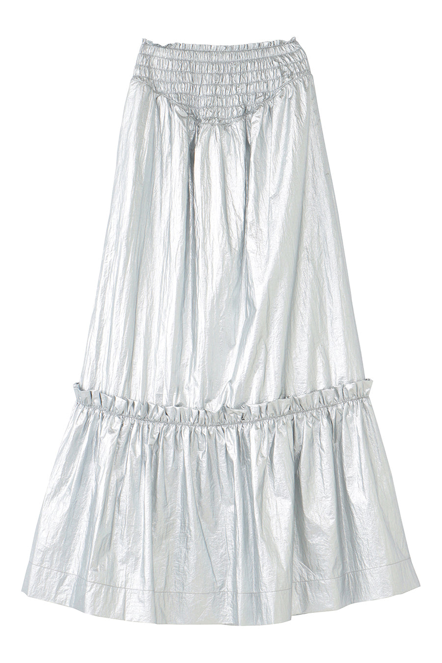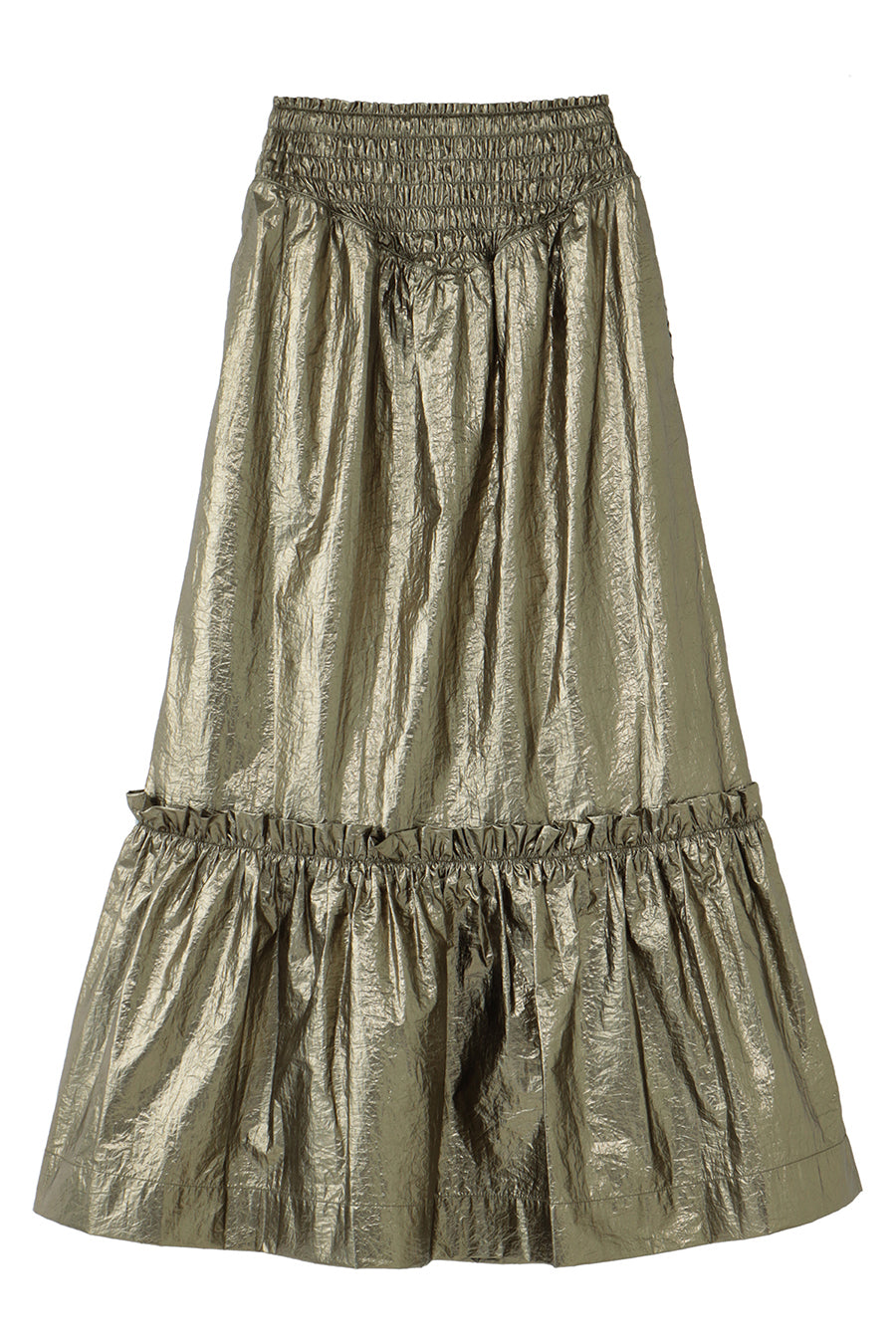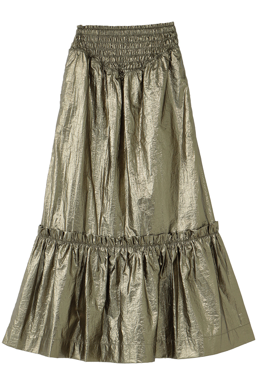 METALLIC SHIRRING TIERED SKIRT
