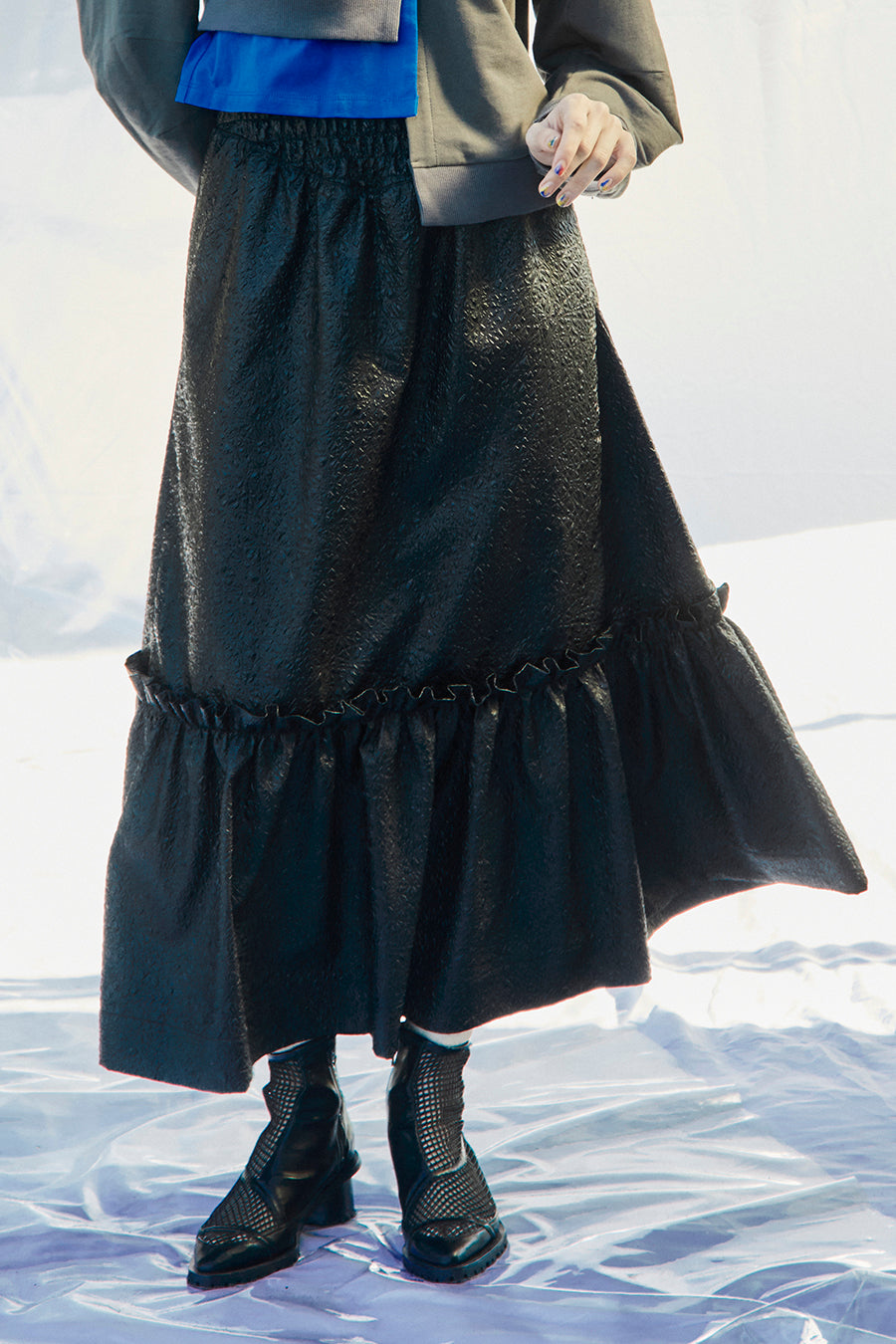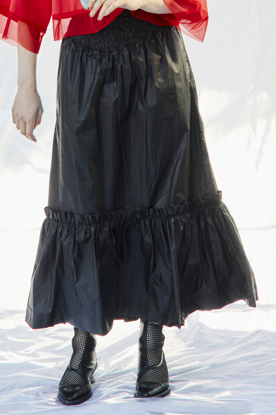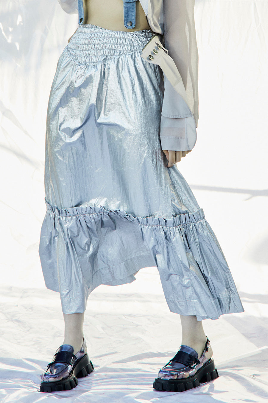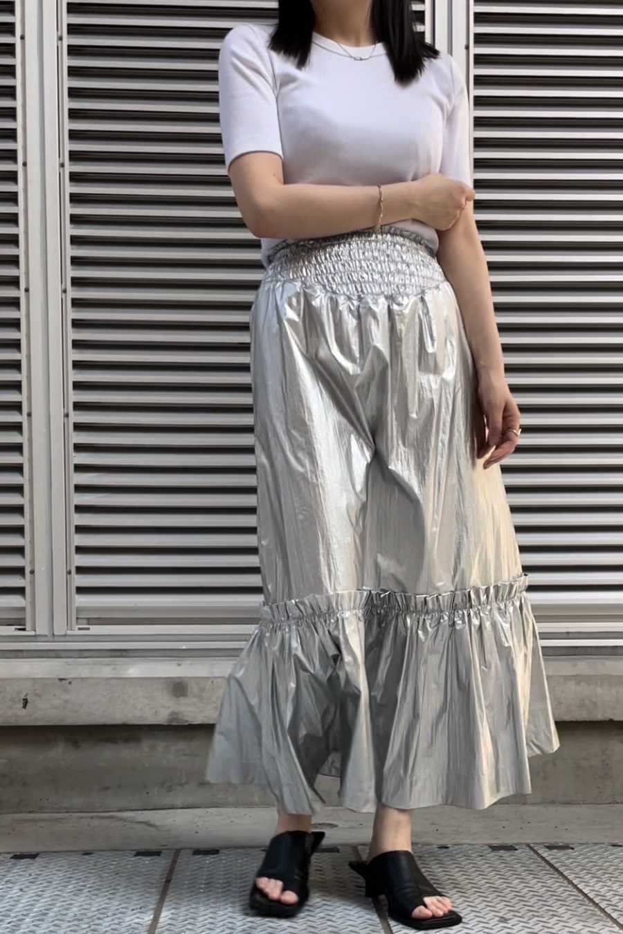 メタリックシャーリングティアードスカート