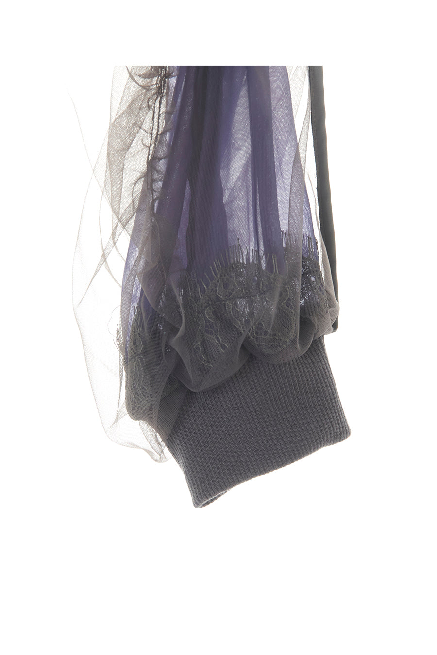 透ける素材、表はチュール、内側はソフトオーガンジーを配色で2枚重ね、全体にギャザーを入れることで立体的な仕上がりに。