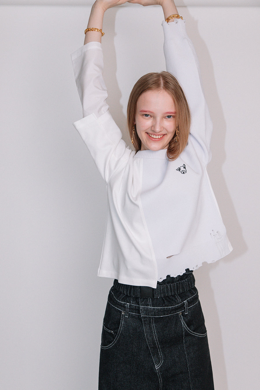 着丈も短めなので、タイトシルエットのボトムにも、ボリュームシルエットのボトムにも合わせやすく、着回しがきくのも嬉しいポイント。