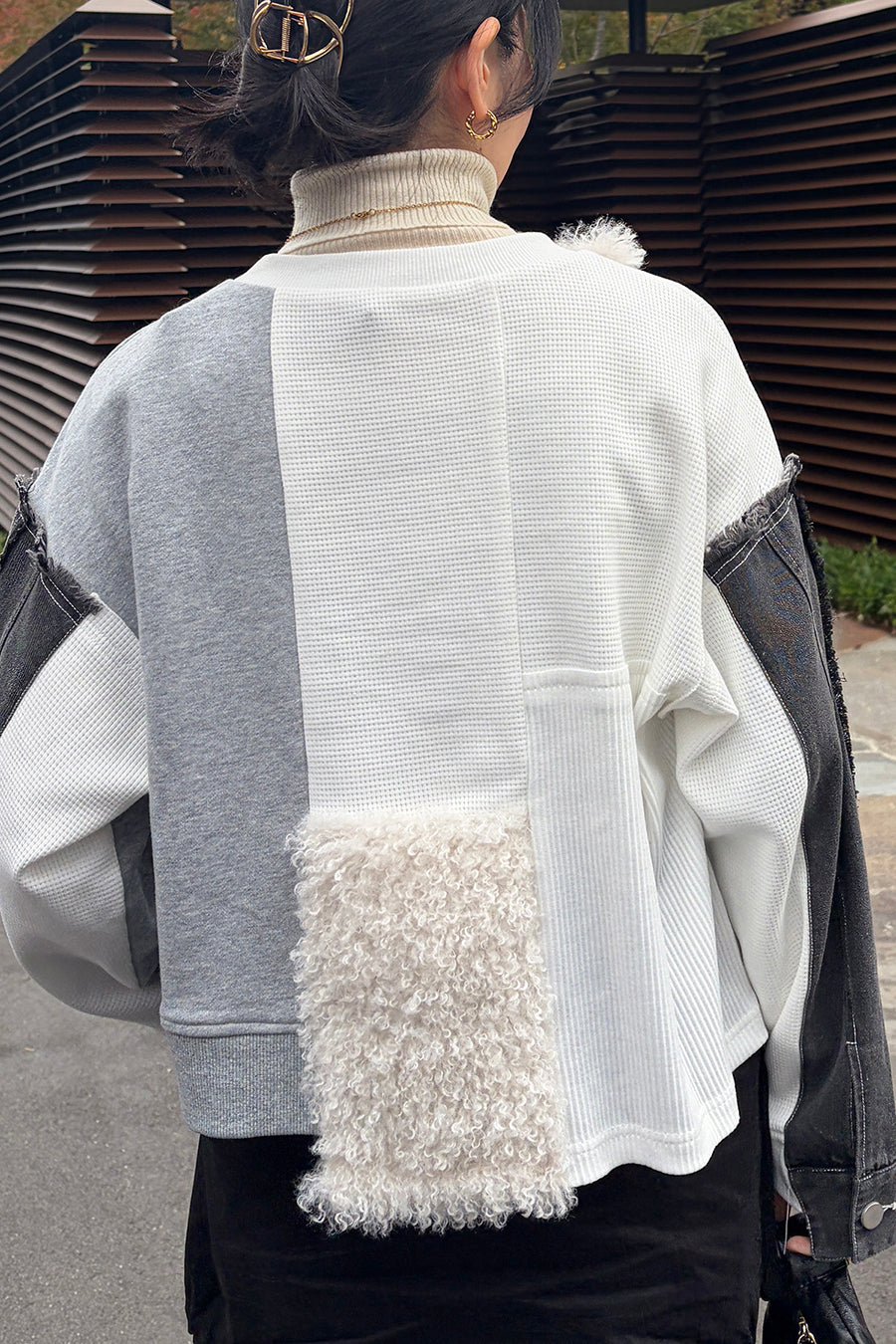 様々な素材を使い遊び心たっぷりに仕上げたプルオーバー。