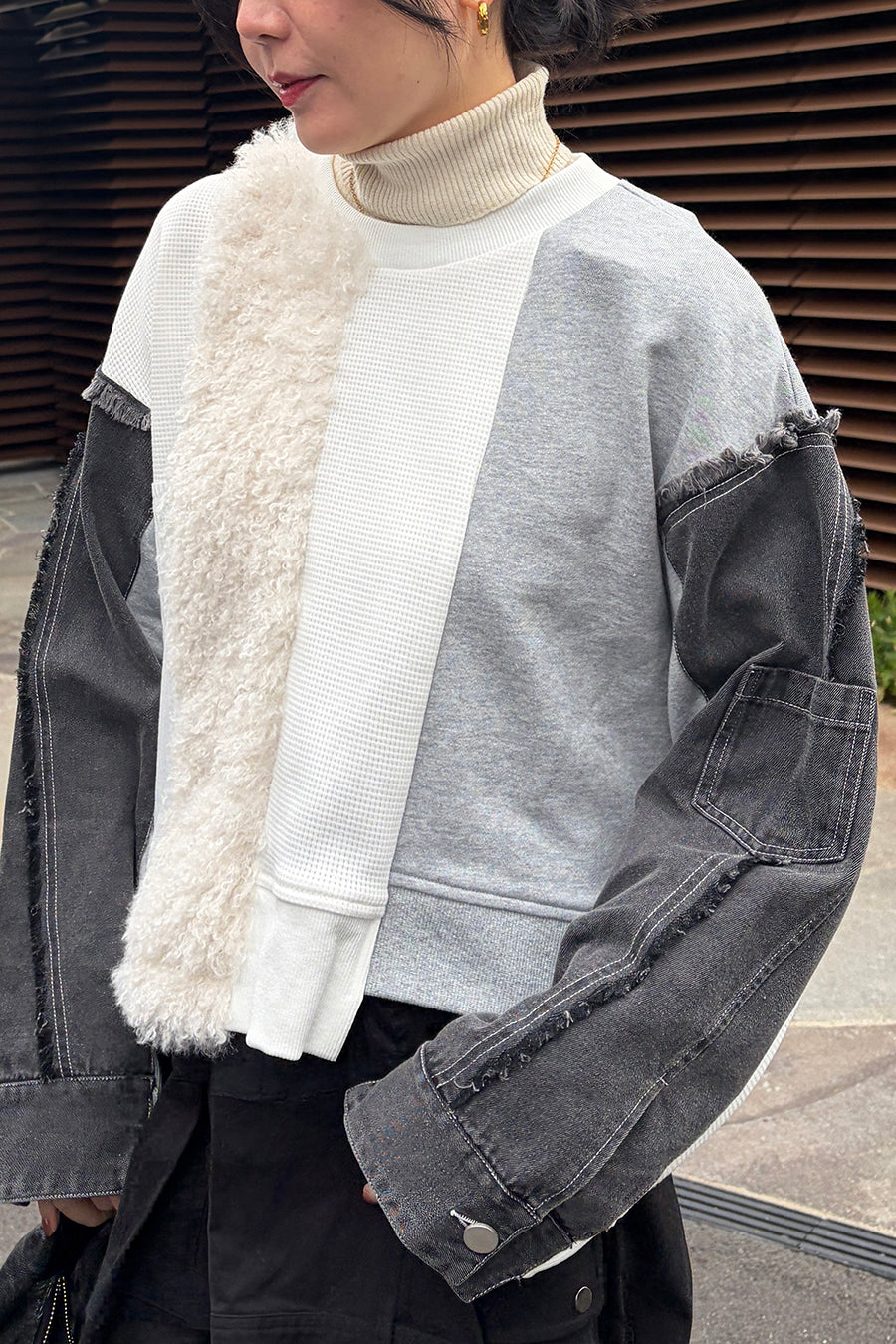DENIM COMBINATION PULLOVER