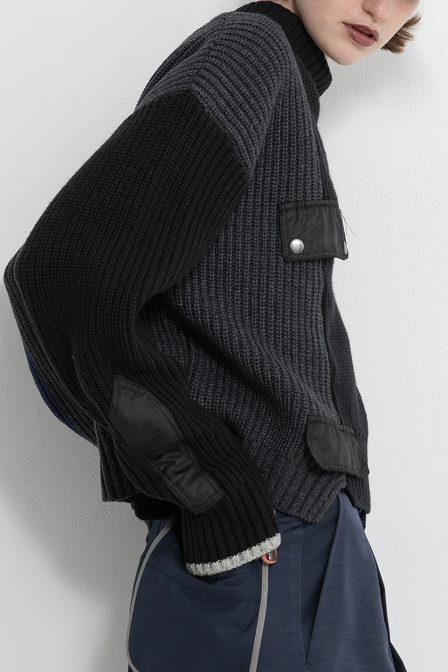 フラップポケットプルオーバーニット