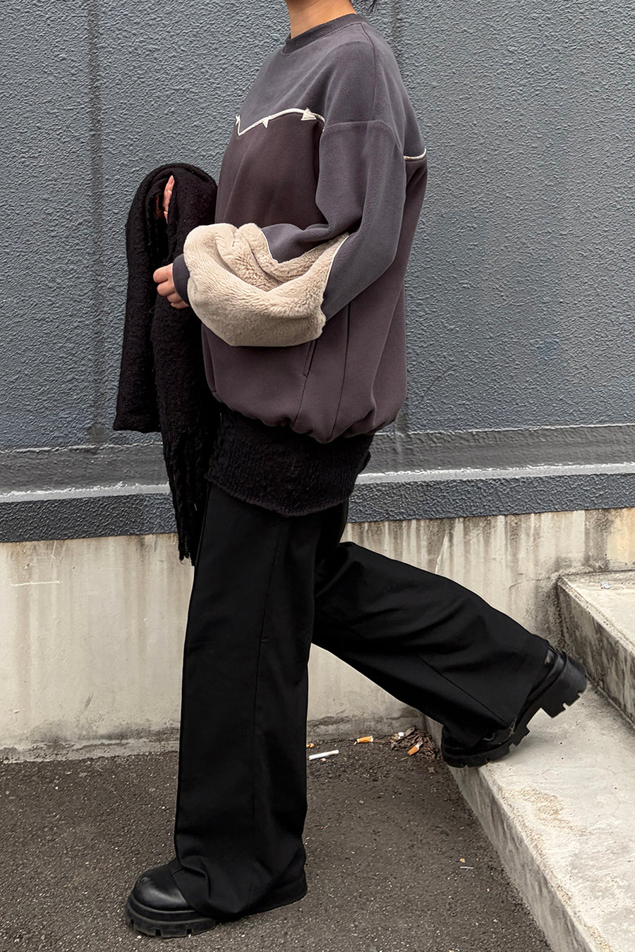 身頃には、表が裏毛、裏がフリースのボンディング生地を使用。