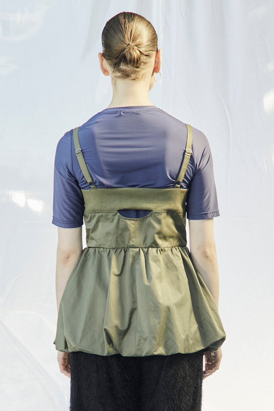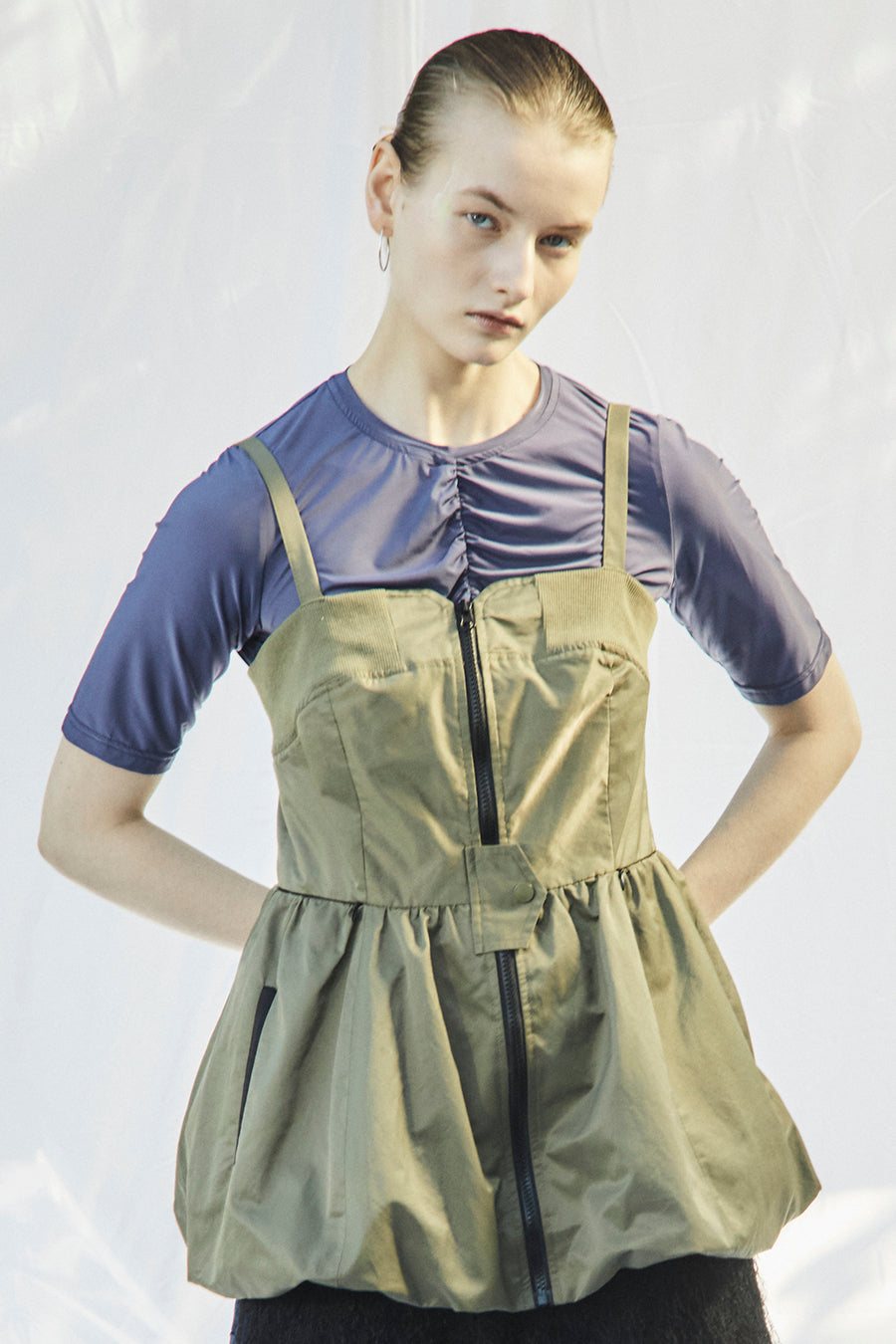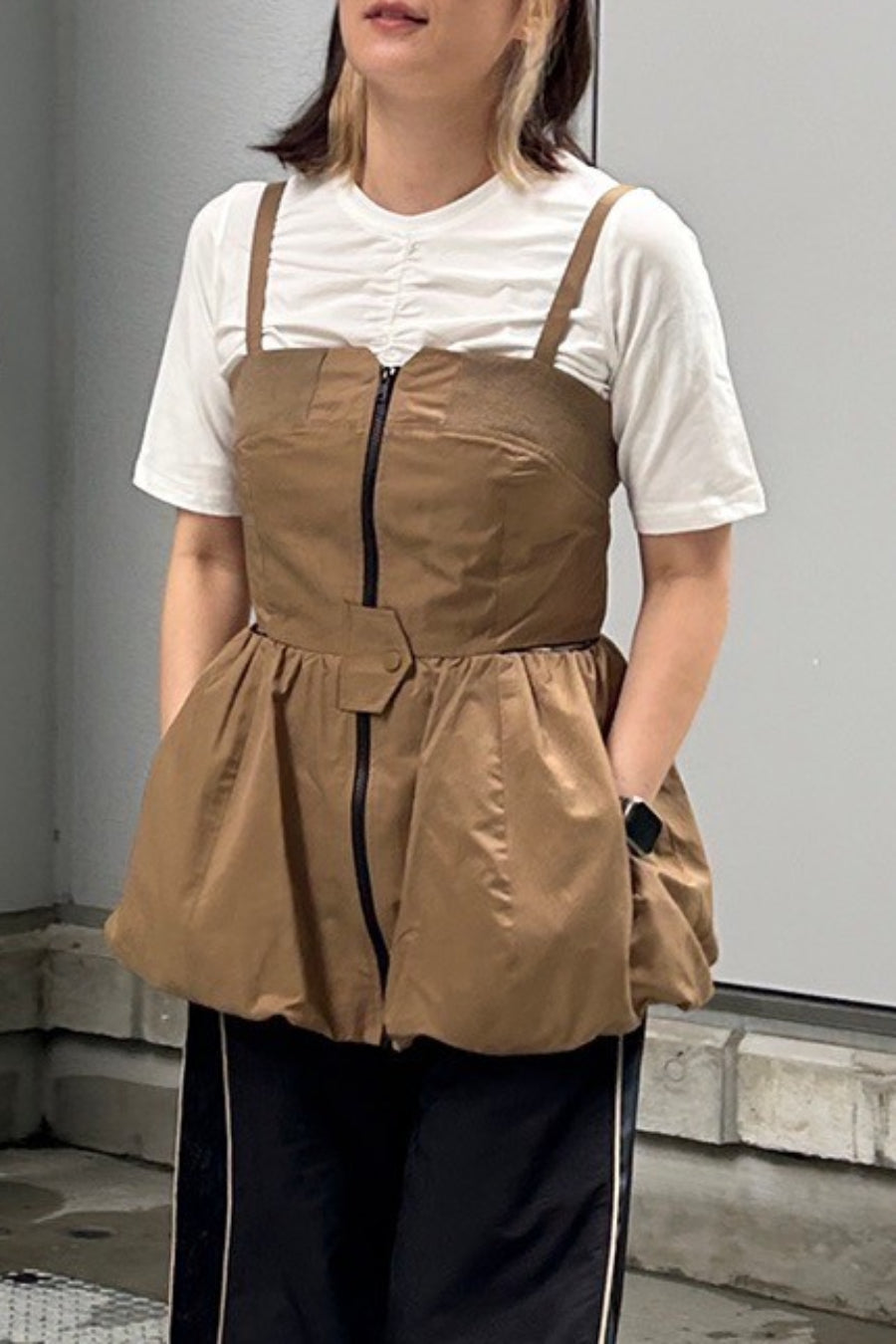 ミリタリーライクな風合いのバルーンキャミとセンターギャザーインナートップスSET。