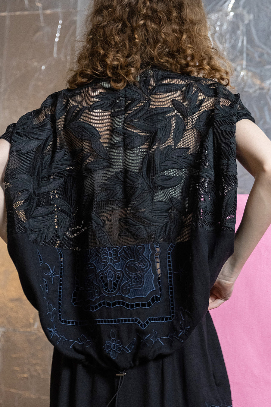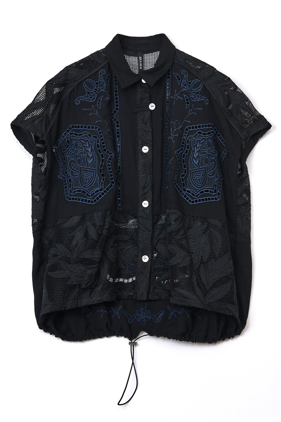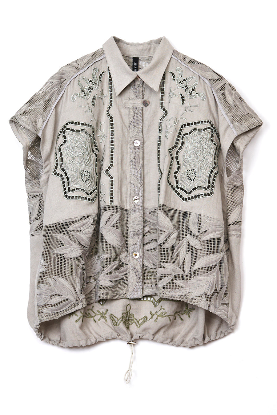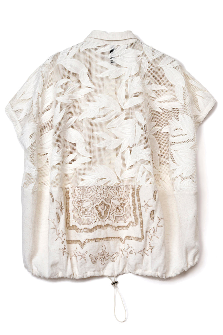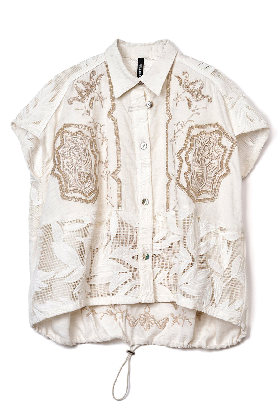 カットワークの刺繍が目を惹く、スリーブレスシャツ。
