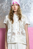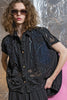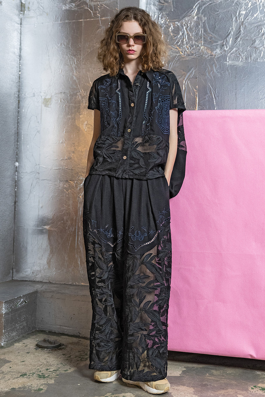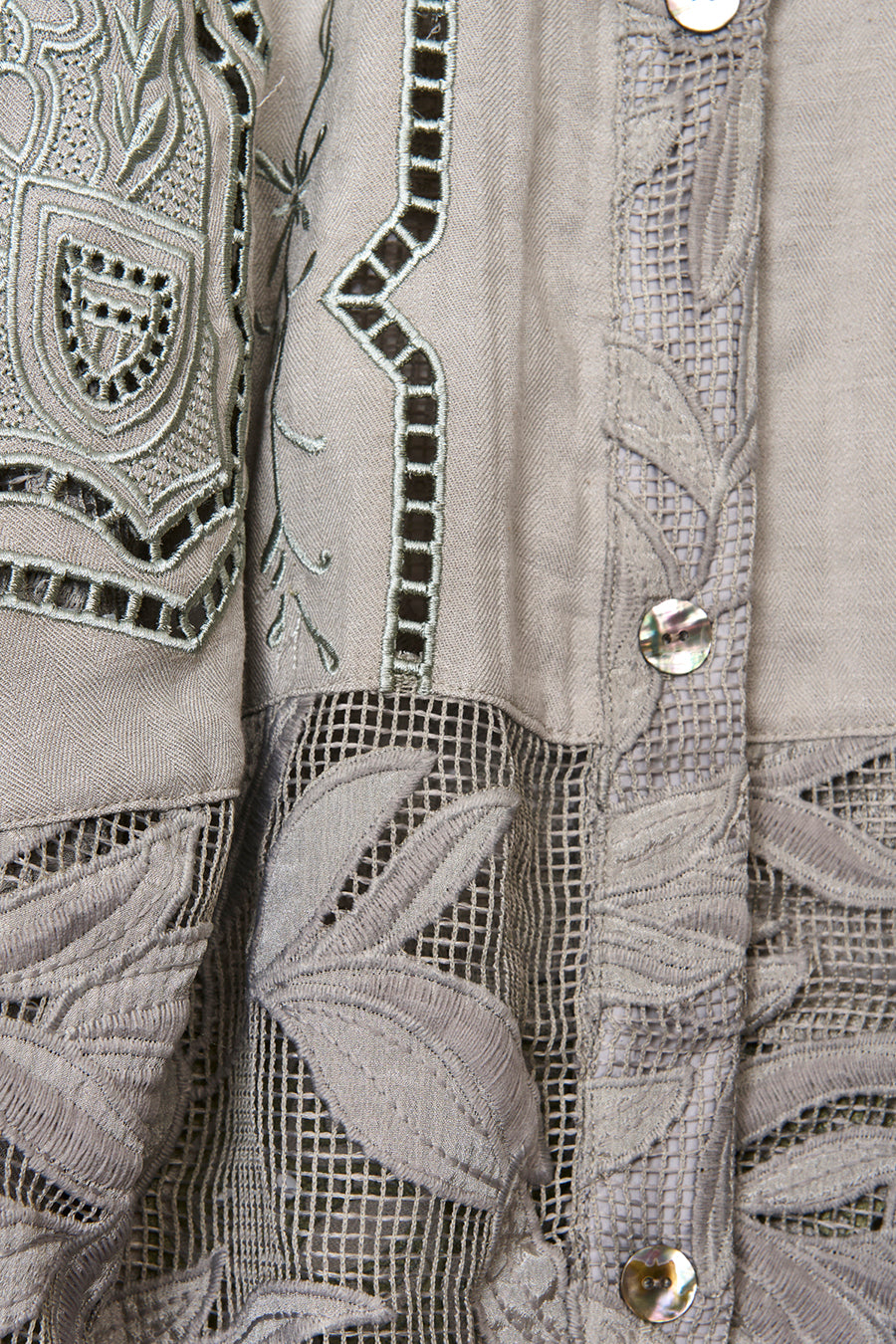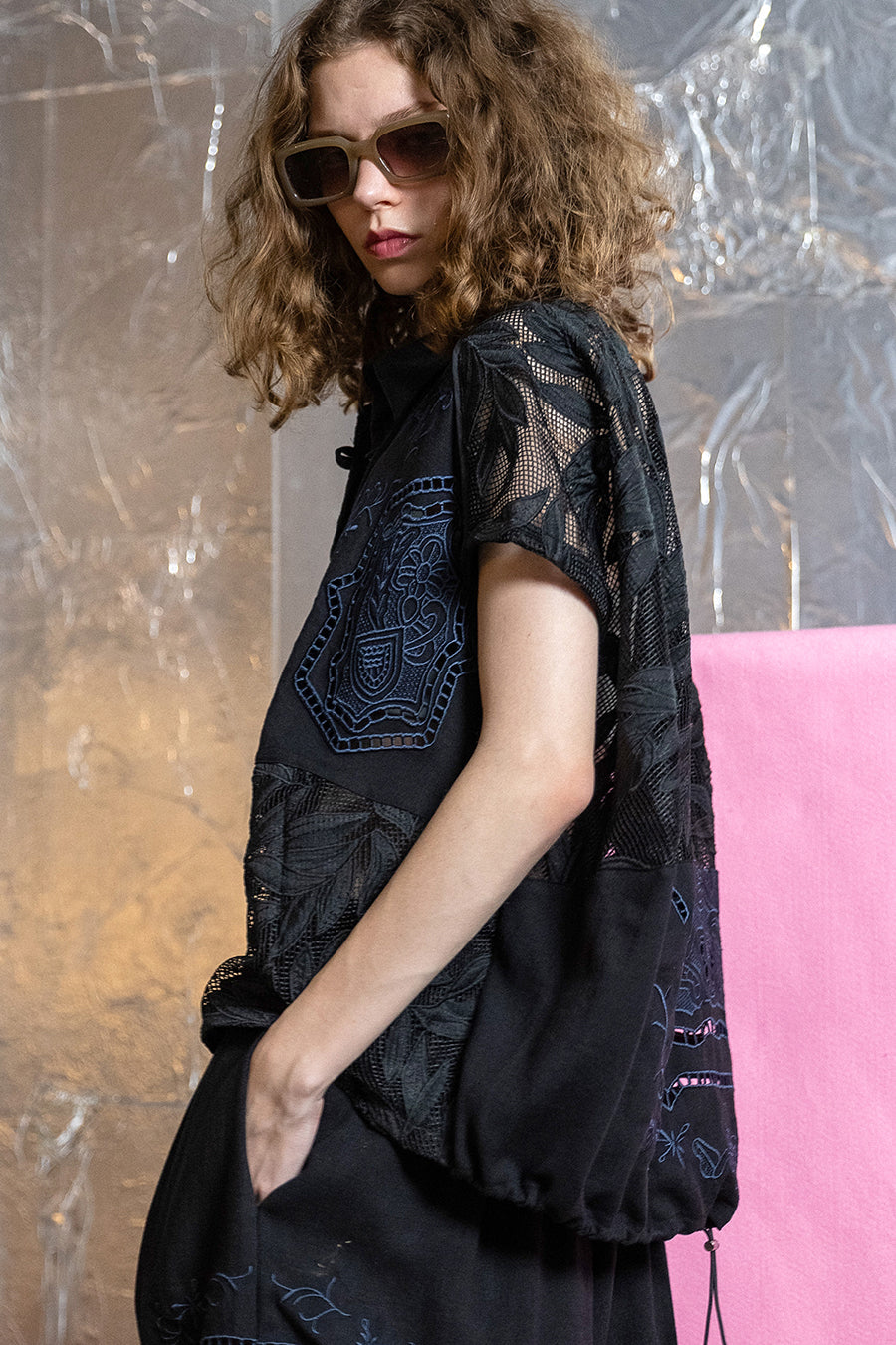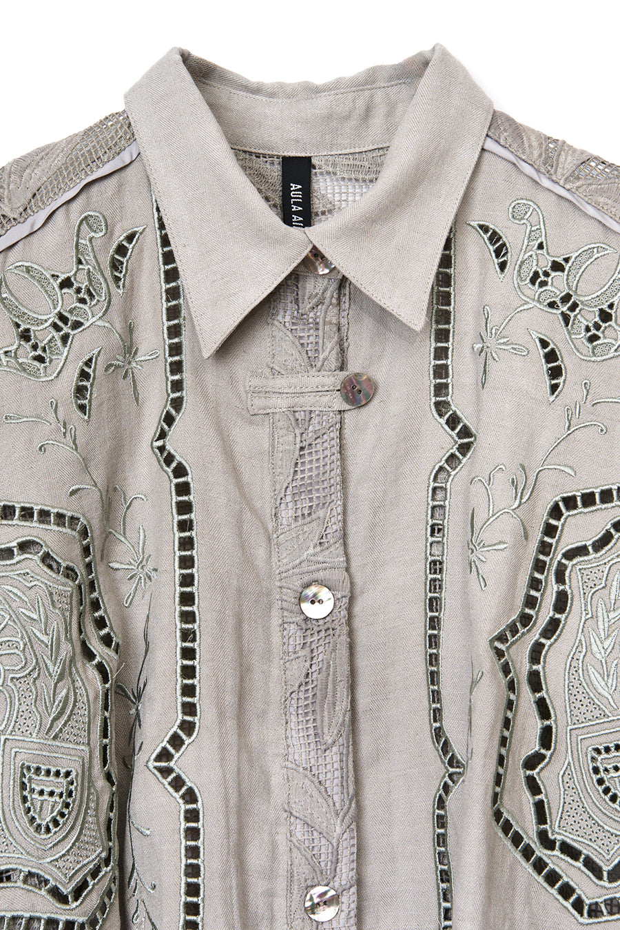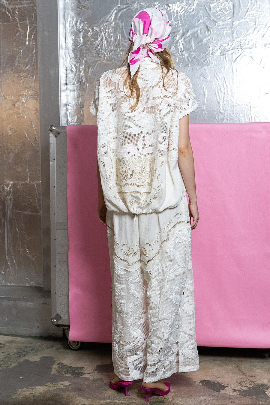 カットワークの刺繍が目を惹く、スリーブレスシャツ。