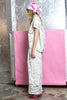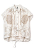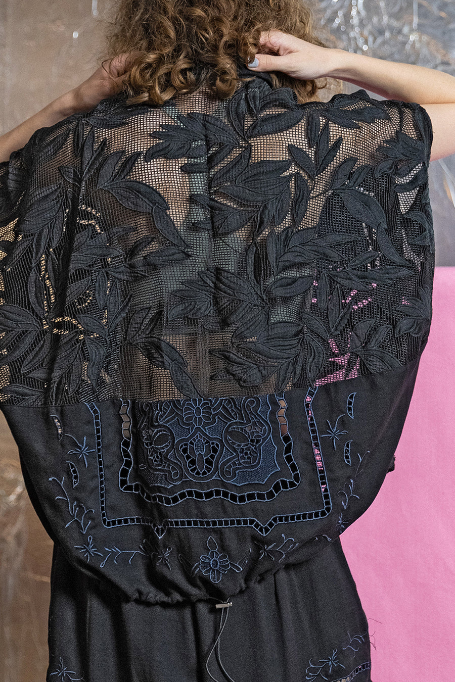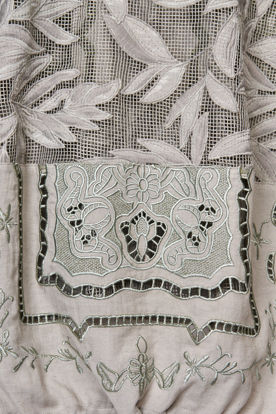 配色糸でカットワーク刺繍柄がデザインされたレーヨンリネンと、