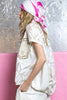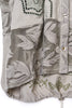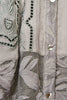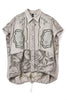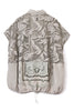 前立ての貝釦がナチュラルな雰囲気。全体にオーバーサイスで後ろ下がりが付き、
