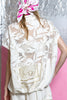 二の腕も隠れる仕様。同素材のパンツとのセットアップコーデもおすすめ。