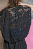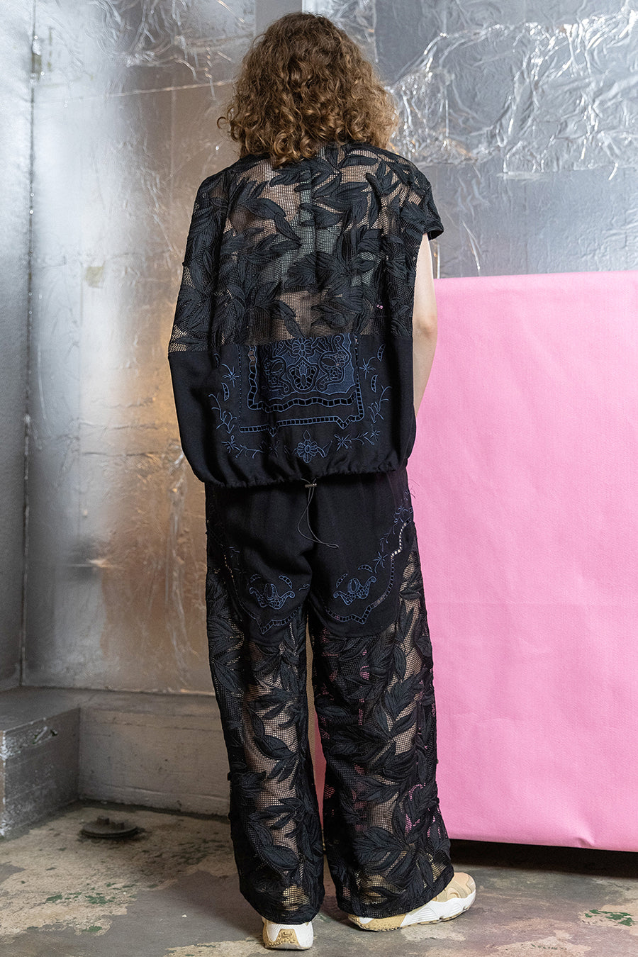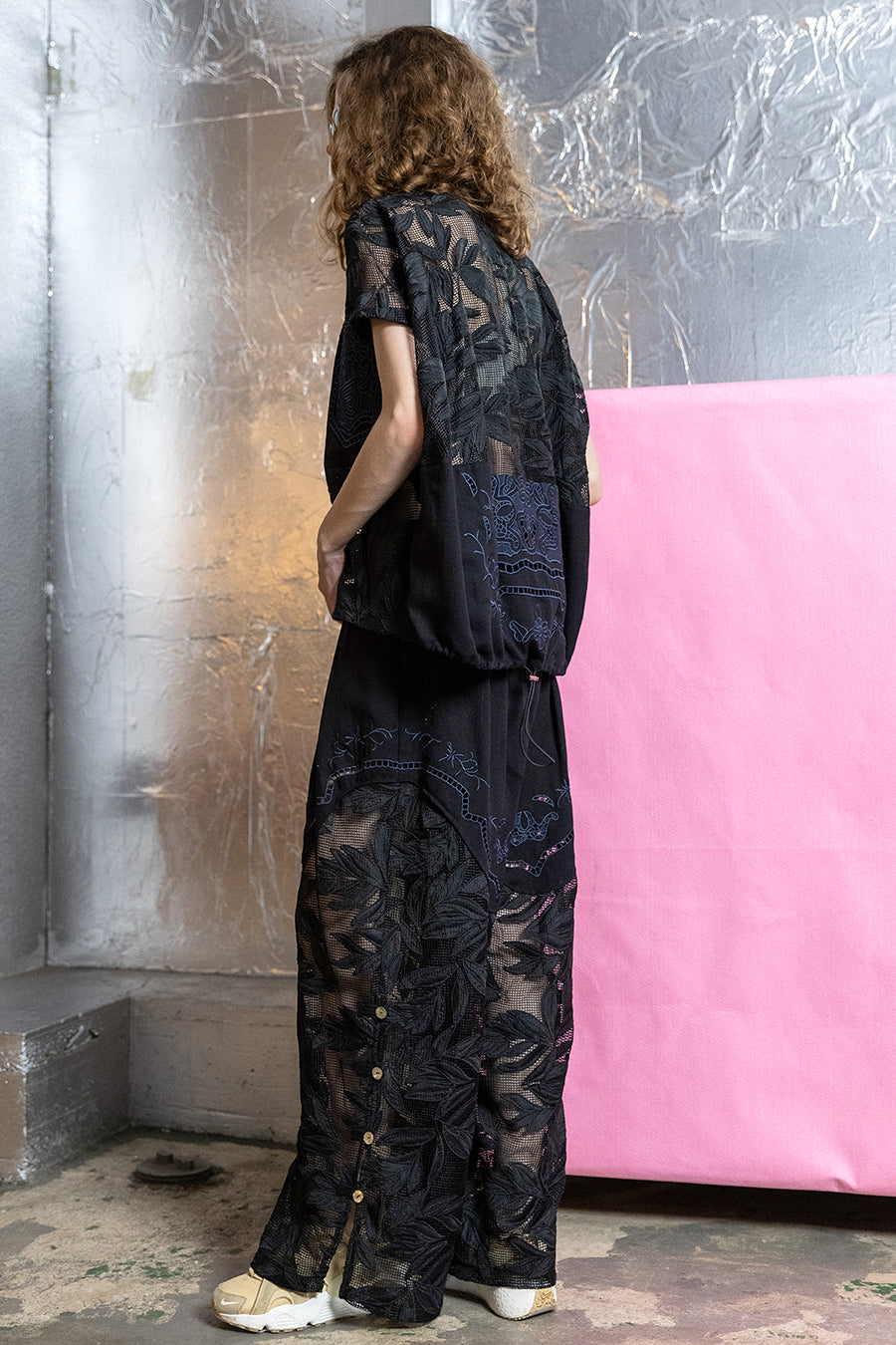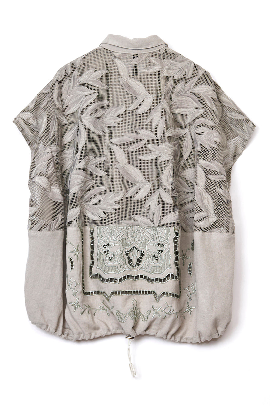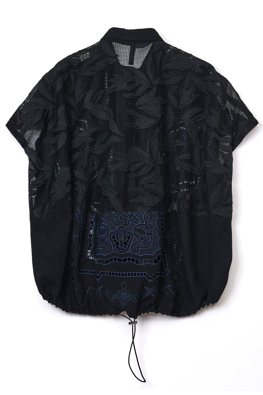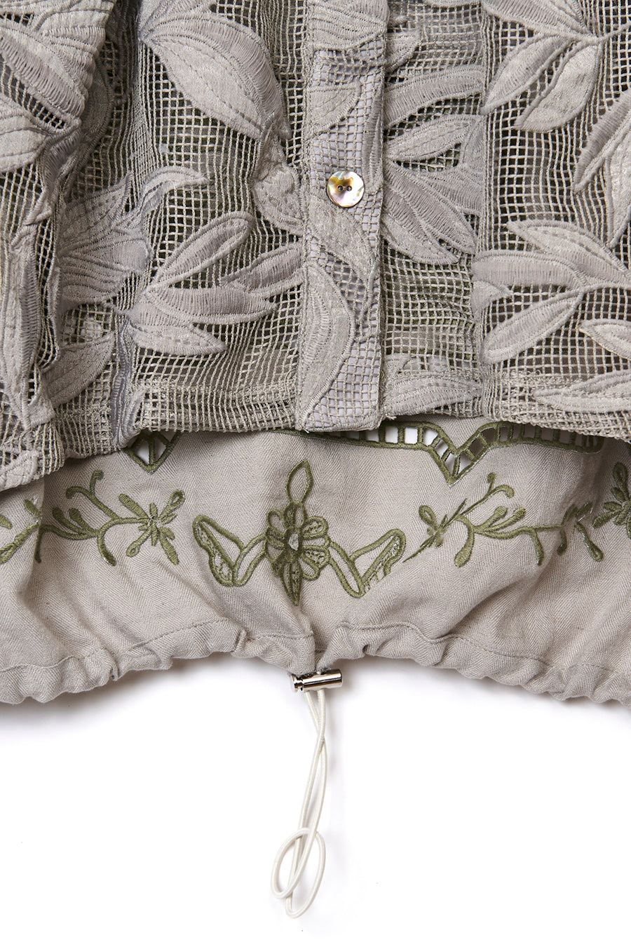 リーフ柄のアップリケ刺繍のメッシュ生地がコンビネーションされた、