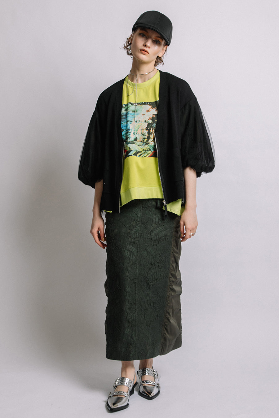 ドレッシーやフェミニンなスタイリングの外しアイテムとしてもおすすめ。