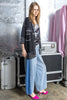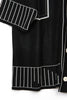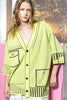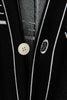 アシンメトリーな左右の大きなポケット、釦やベルト、