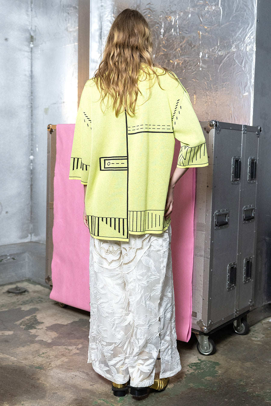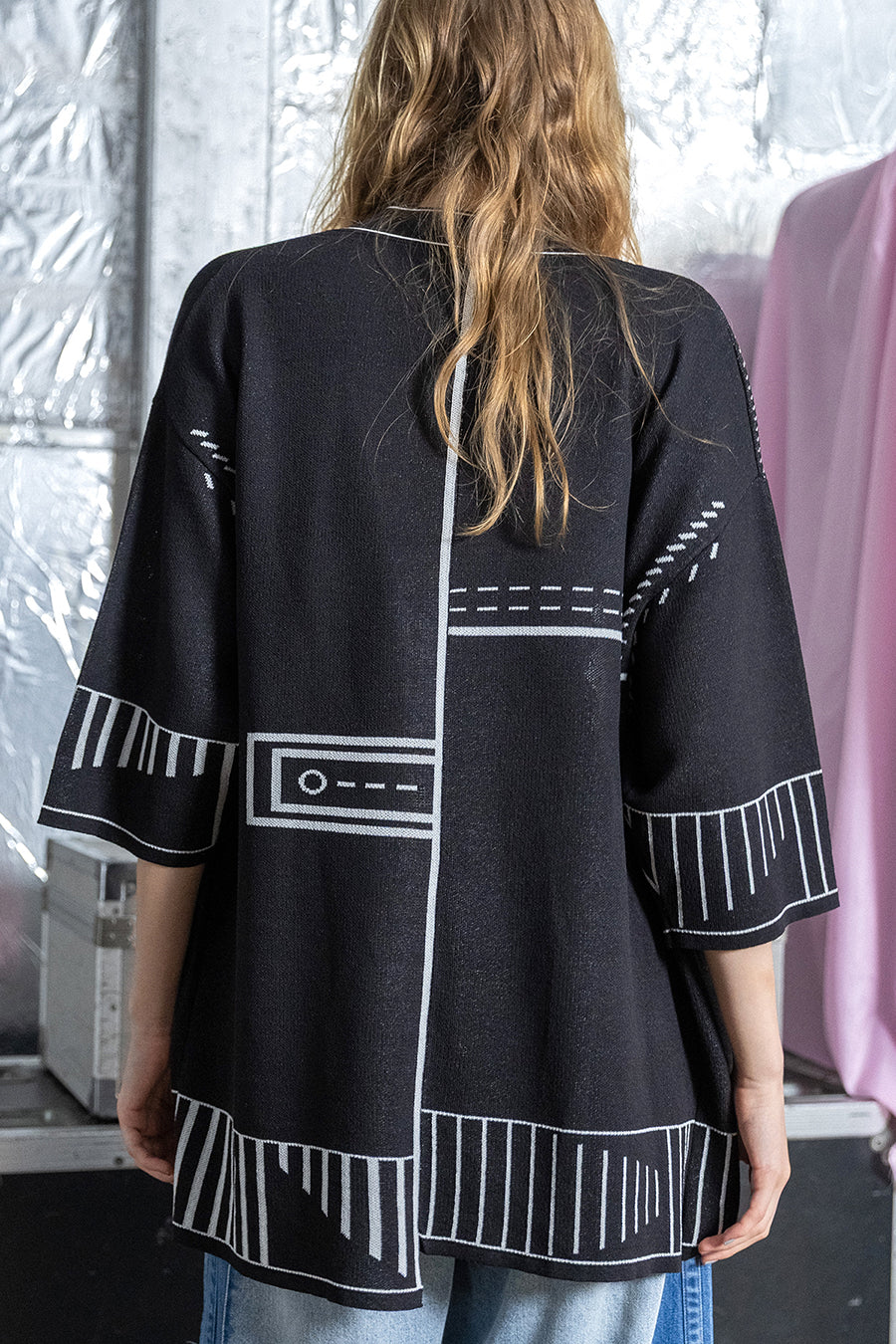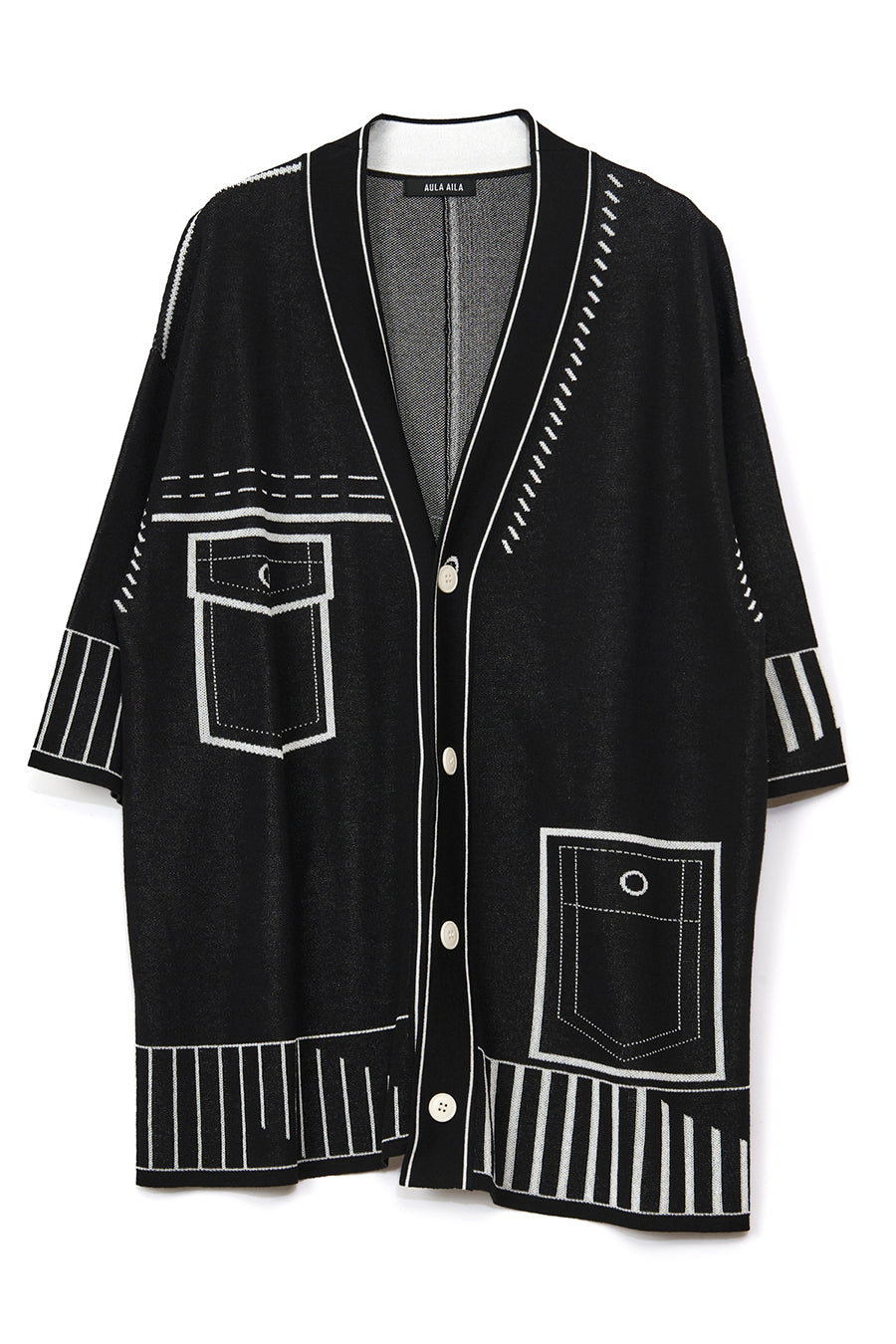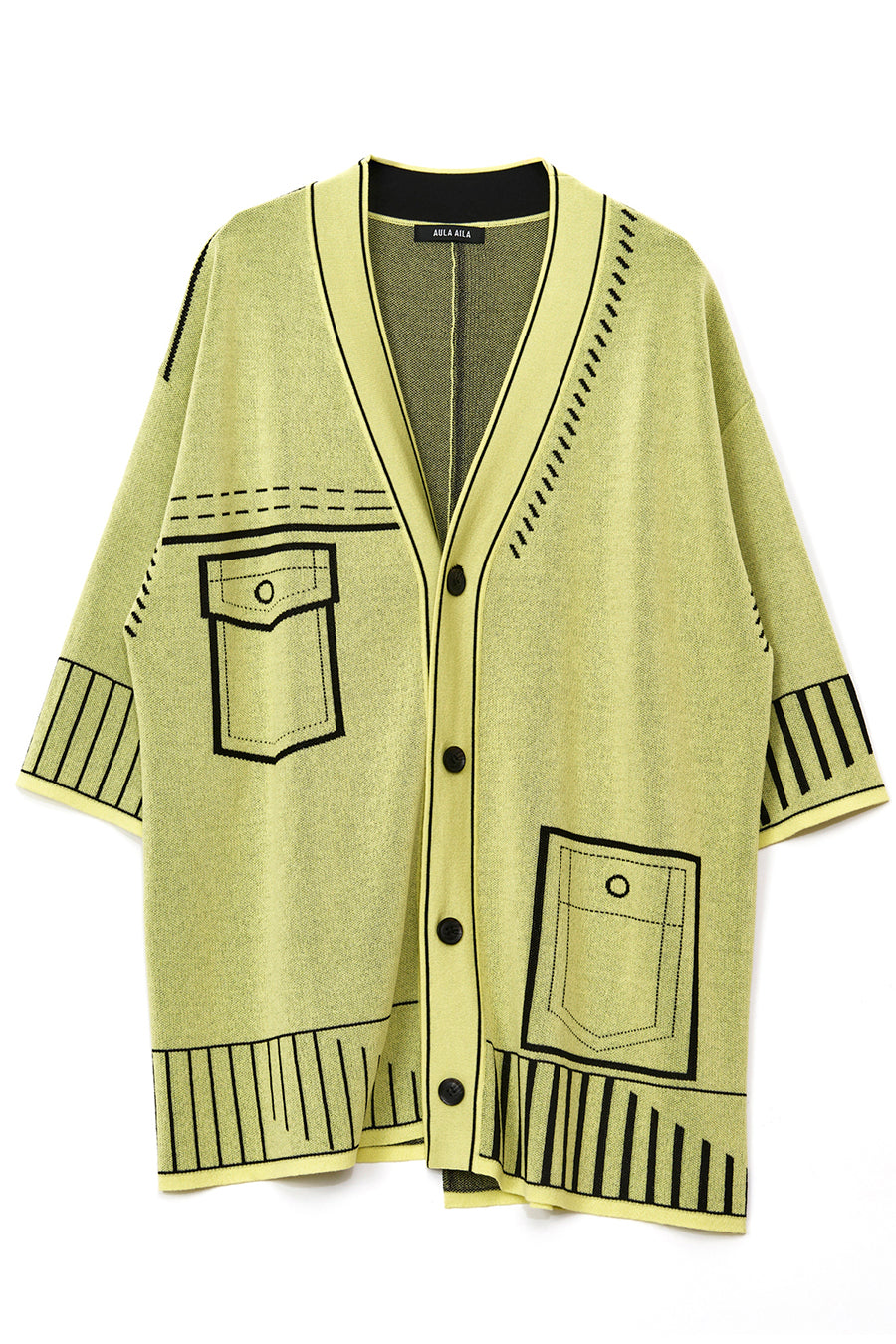 オーバーサイズのV開きカーディガンで、半袖なので長く着れる。